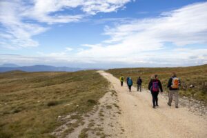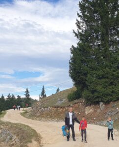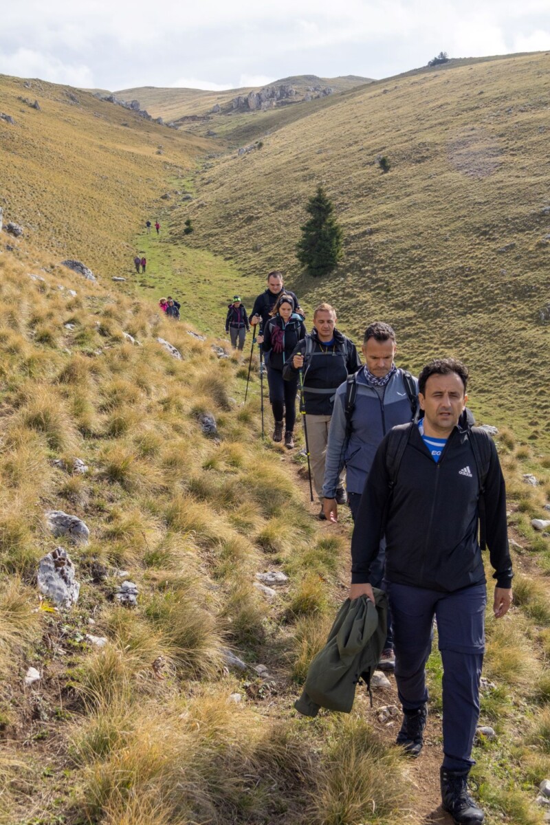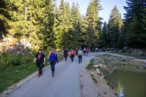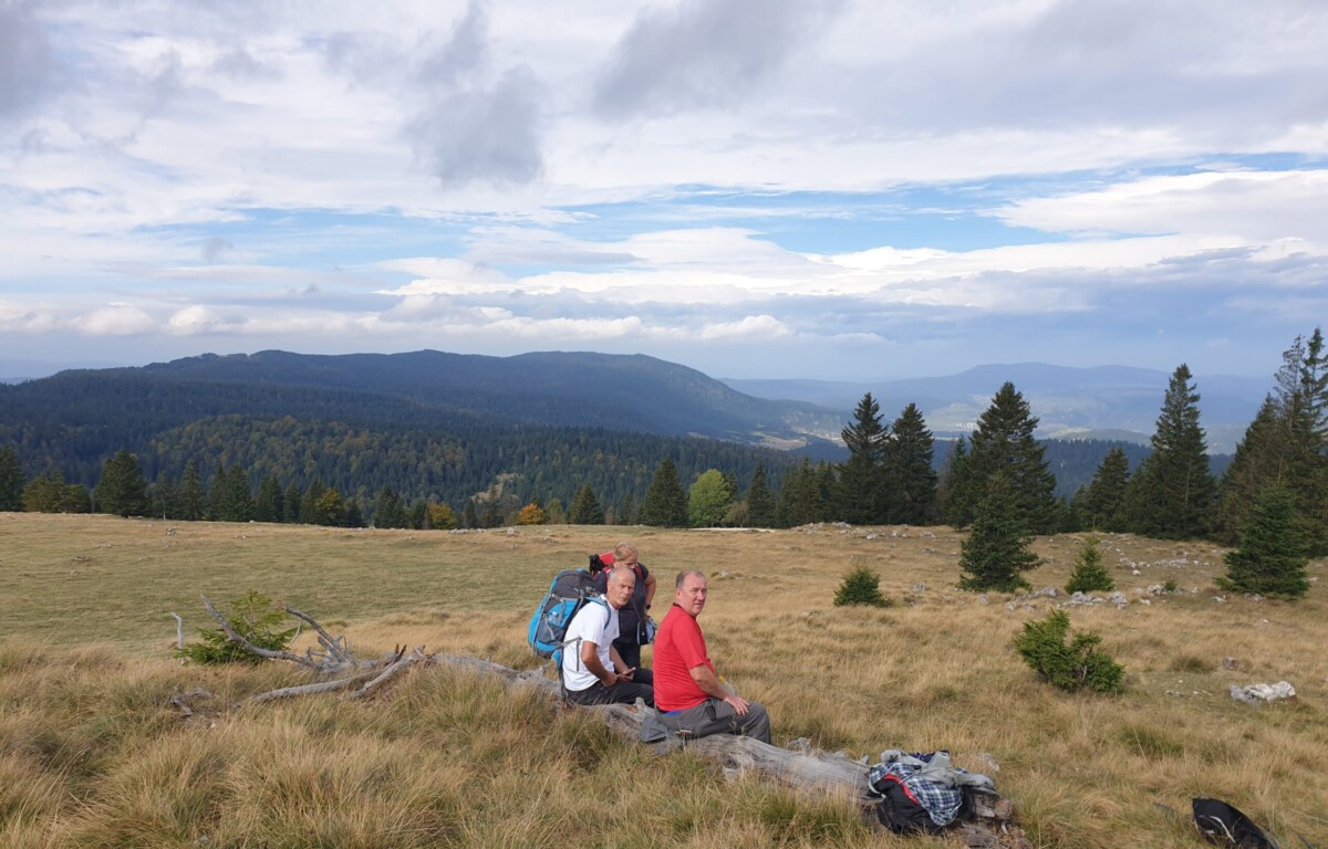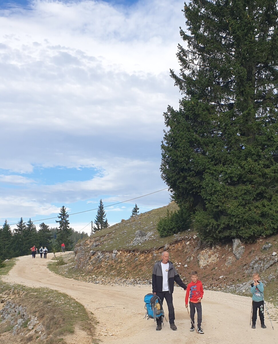Spuštanje je bilo kružnim makadamskim putem, a na povratku smo se opet zadržali kod doma Jusuf Pečenković, gdje nas je dočekao lokalni domar s pićem i, naravno, čuvenim vlašičkim čajem od planinskih trava. Nekima je taj čaj posebno dobro sjeo — osobito jednom kolegi koji je tu noć ranije jedva sklopio oči zbog nesanice 😄.