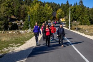 Dok su se oni koji su se popeli na vrh vraćali u dom Erik Brandis, dio ekipe koja se tog jutra odlučila za lakšu varijantu popela se makadamskim putem do doma Jusuf Pečenković, usput posjetivši lokalnu prodavaonicu domaćih sireva i delicija, gdje su ponešto i kupili. Uživali su i u pogledu na Paklarske stijene s vidikovca Golica u blizini doma.